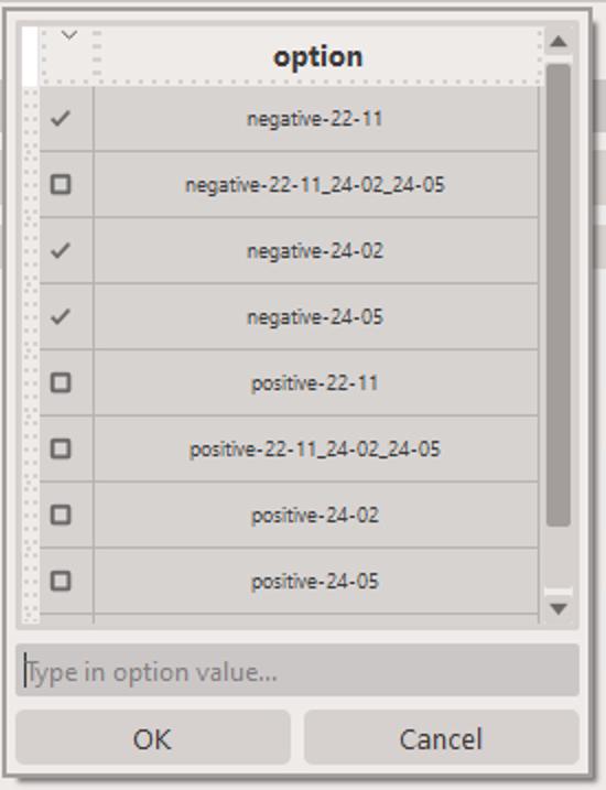 We can use the KPMP data as a example. As of writing this guide, we have collected three batches of KPMP data, acquired over the course of ~2 years. When you click on the Add reference project... button, you will be presented with a dialog where you can select the projects you want to include in the reference project. As shown below, there are several options, including negative-22-11, negative-24-02 and negative-24-05. You can select as many or as few as you want. The second option, negative-22-11_24-02_24-05 is in fact a reference project that combines all three projects together.