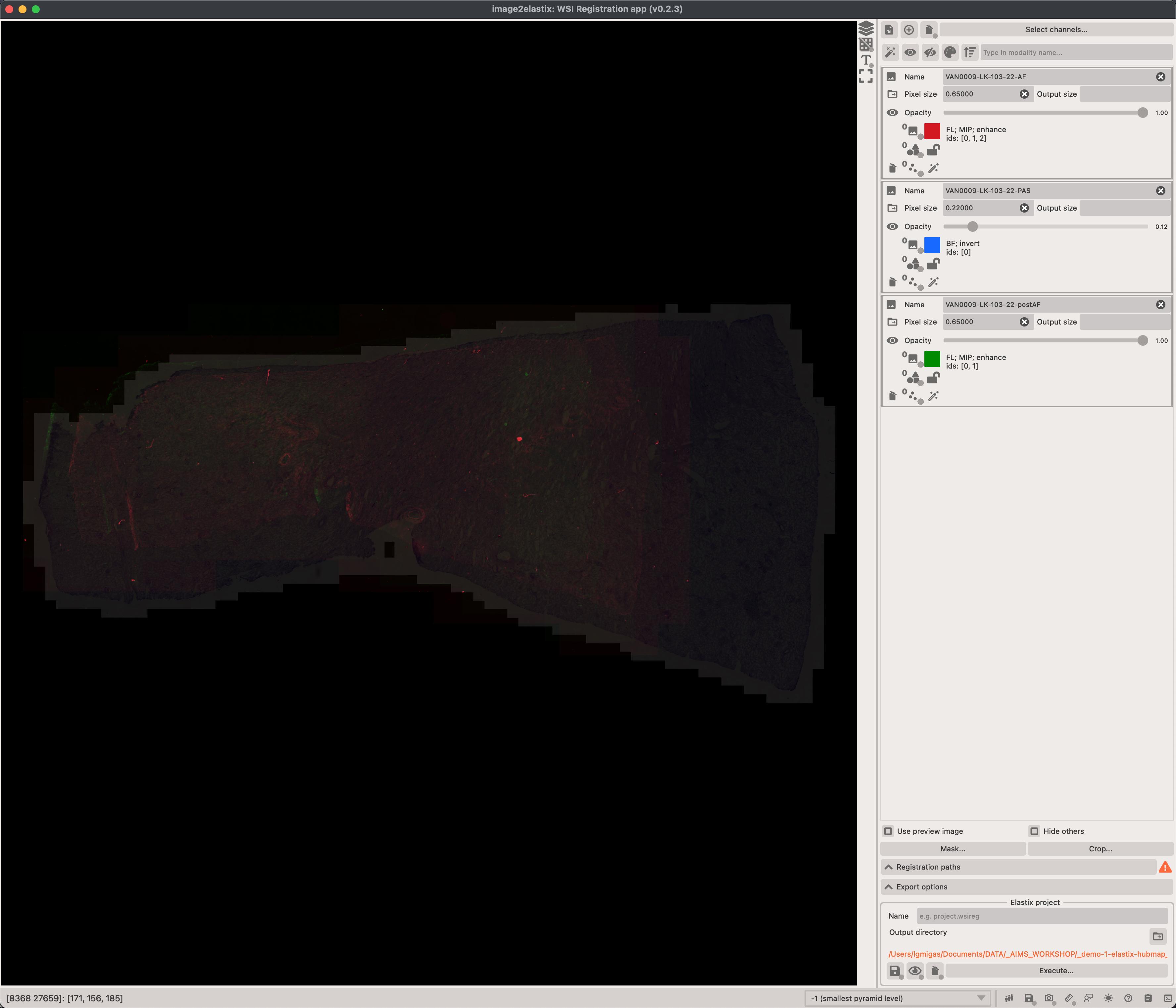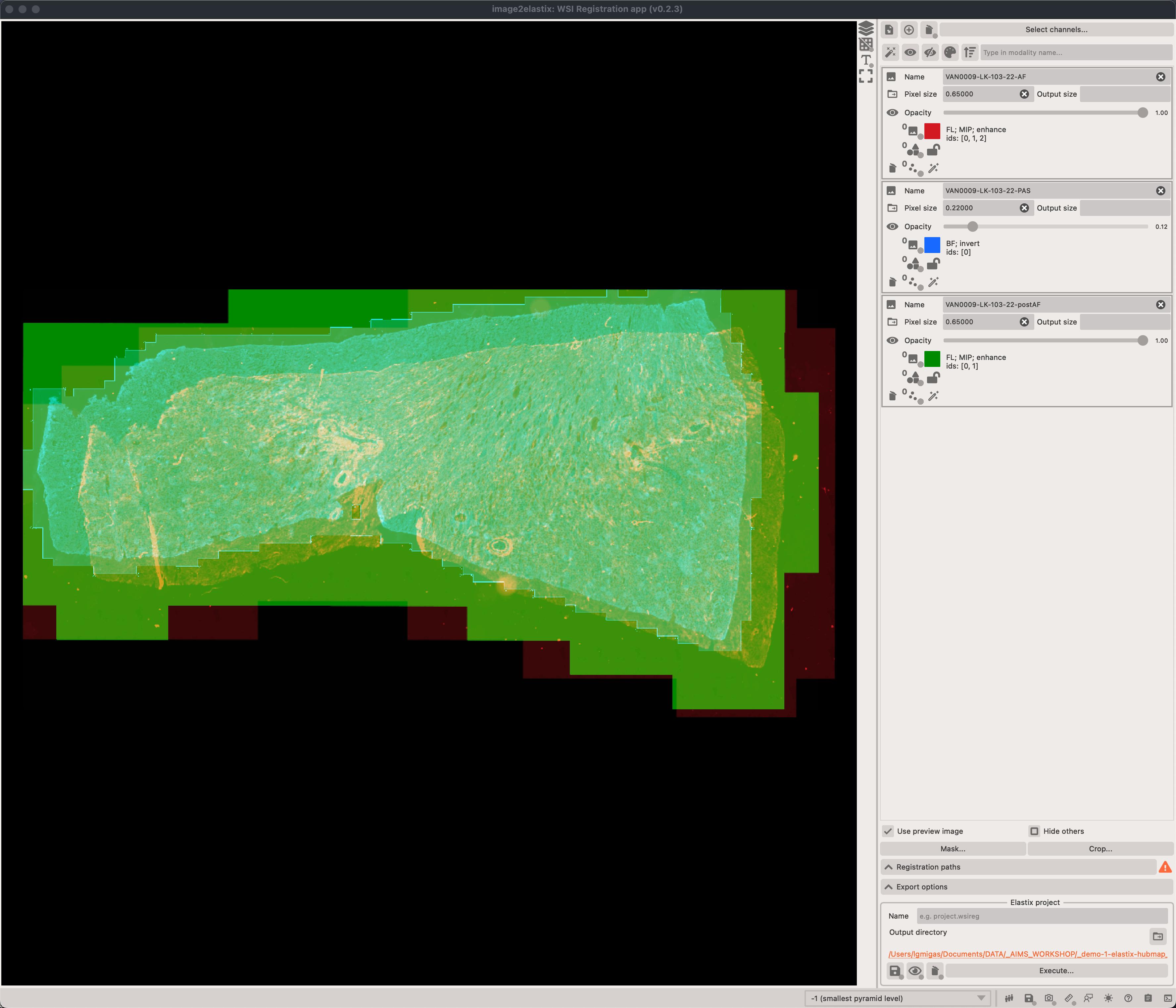 This app performs whole-slide image registration, similar to what napari-wsireg does. The main difference is that it has improved image pre-processing (which in turn improves the registration), easier creation of masks and cropping areas, utilizes a project structure and has much improved command-line interface.