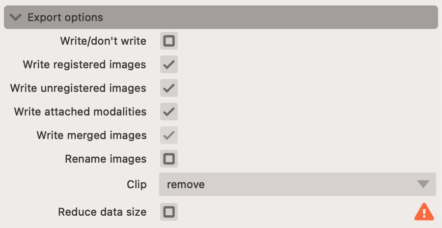 There are several export options available to you. This includes which images (or attachment modalities) should be transformed and exported.