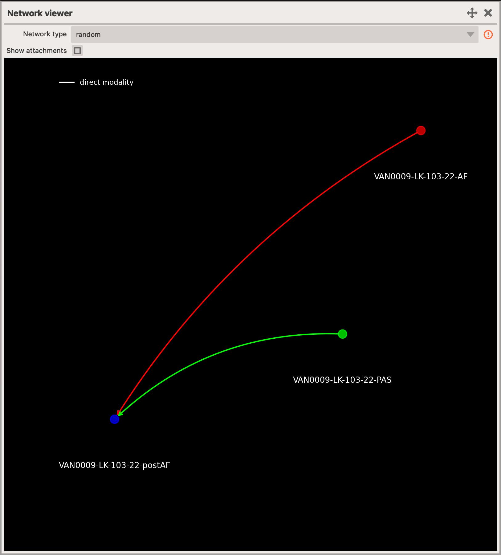 There is always a source modality which is going to be moved to the target modality. You can also define a through modality, which is a modality that the source is going to be registered to first, and then the target is going to be registered to the through modality.