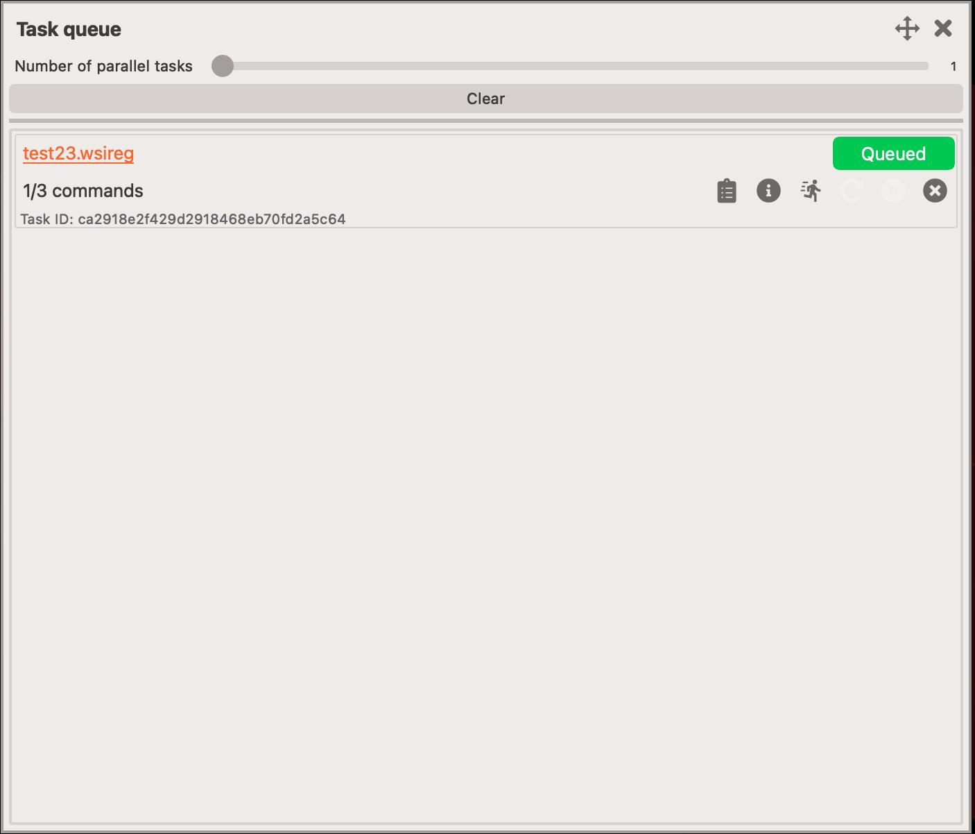 You can monitor the progress of each task in the queue, as well as pause/cancel them if needed. Also, you can view the commands that are being executed for each task.